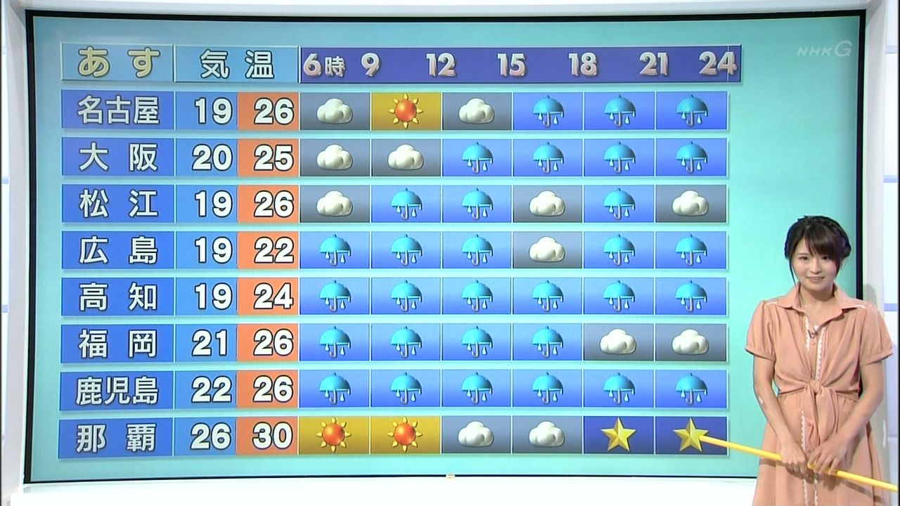 丸顔に細い体、小柄な背丈、くりっとした目、おとなしいメイク。お天気解説の時、手にしている棒が「まるで魔法少女の持つステッキ」に見えるとかで大人気。
