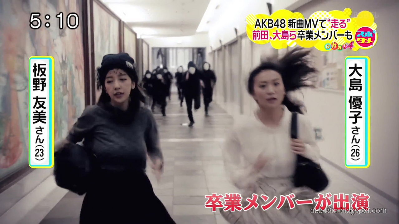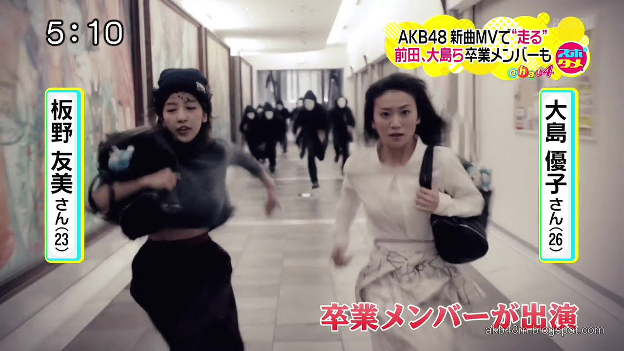 Youtubeで公式公開されているMVはショートバージョンで、スタート走者の高橋みなみから前田敦子、松井珠理奈、篠田麻里子らにバトンがつながれ、大島優子と板野友美が走り出すシーンで途切れている。だが、テレビの情報番組で公開された“続き”部分での、「板野の走りがものすごい」ことが話題になっている。何がどうすごいのか? 胸がとにかく不自然で「すごい」のだ。
