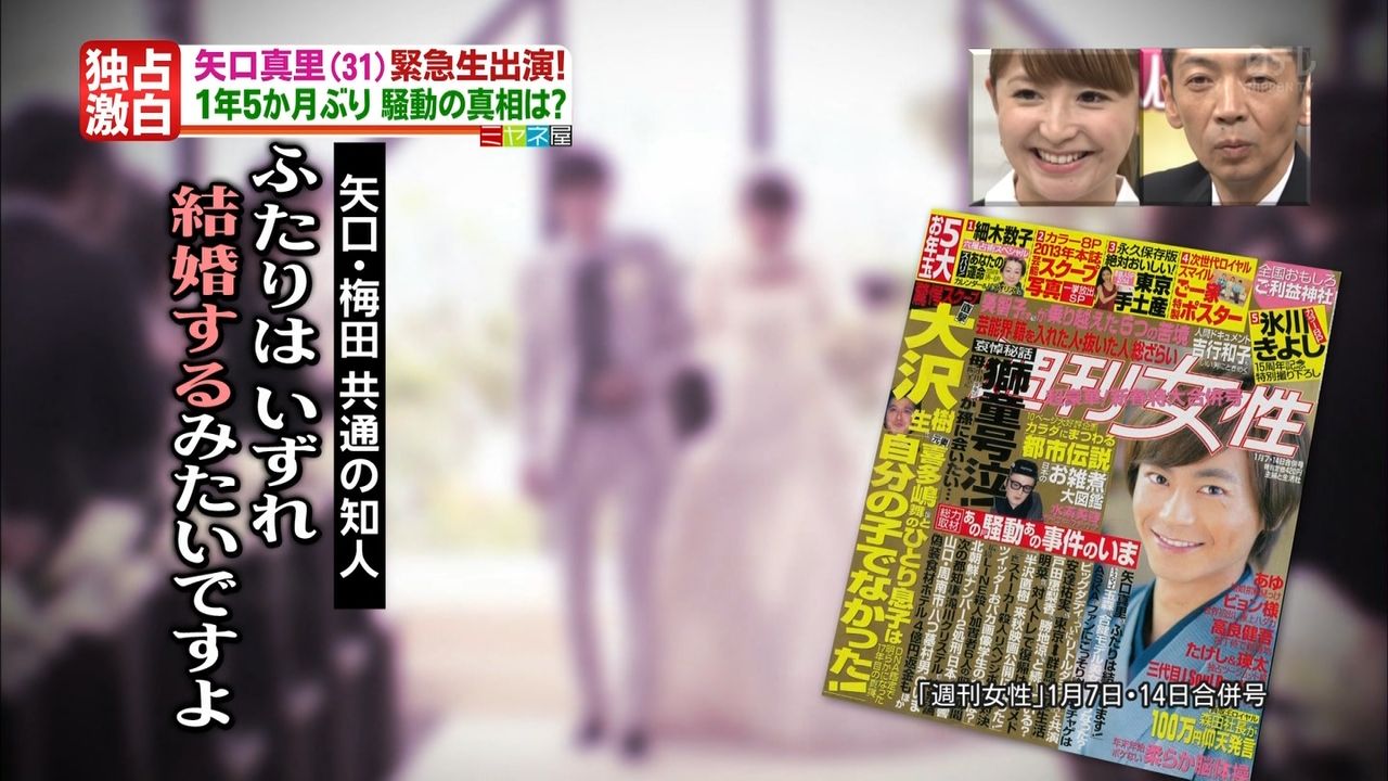 「番組出演が決まった際、矢口の所属事務所側から番組サイドに『二次利用はやめていただきたい』と申し出があり、番組側もそれを了承しています。理由は、今回の矢口の復帰に際して動いた大手芸能事務所の意向。矢口の事務所が『映像があると、本格的に復活させても、何度もその場面を使われて、商品価値を落とす形になる』と、大手事務所のトップに泣きついた結果だそうです。まぁ、その大手事務所と宮根がズブズブなのは有名な話ですし、そもそも番組側は“大人の事情”で矢口を差し込まれただけなので、何も文句は言えないでしょうね」(芸能関係者)