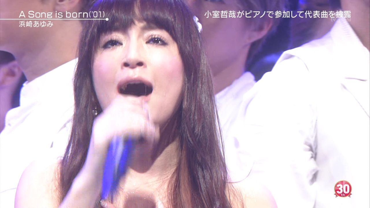 9月23日に放送された「ミュージックステーション ウルトラFES」(テレビ朝日系)に、浜崎あゆみが生出演。小室哲哉のピアノ伴奏で2001年のヒット曲「A Song is born」を熱唱した。14年後の今も張りのある歌声は健在だったが、残念ながら肌のほうは健在というわけにはいかなかったようだ。