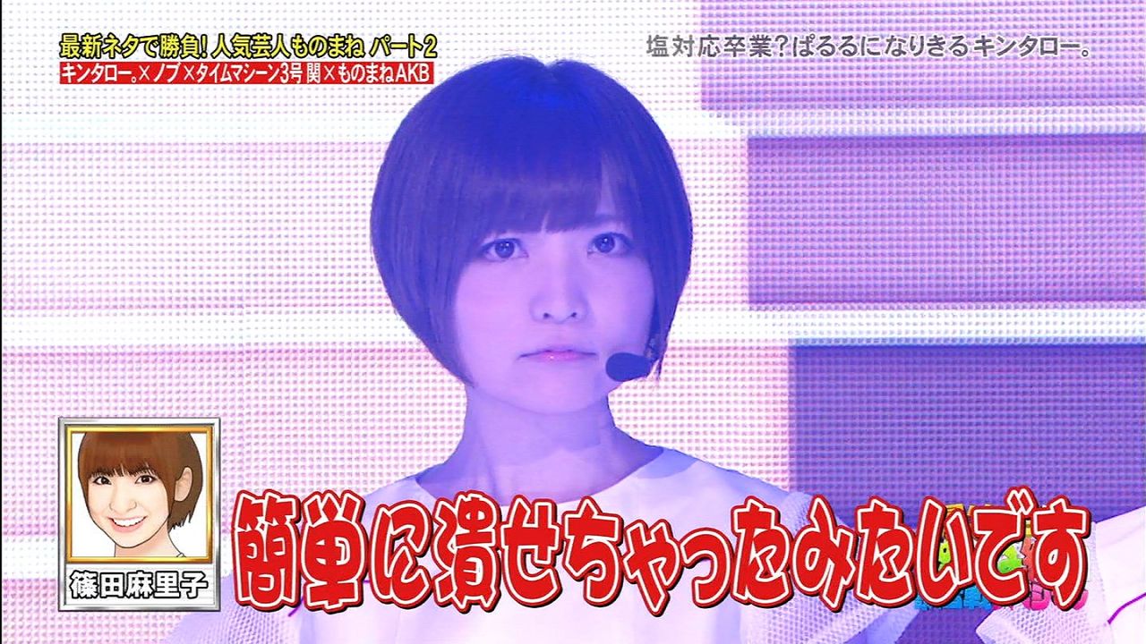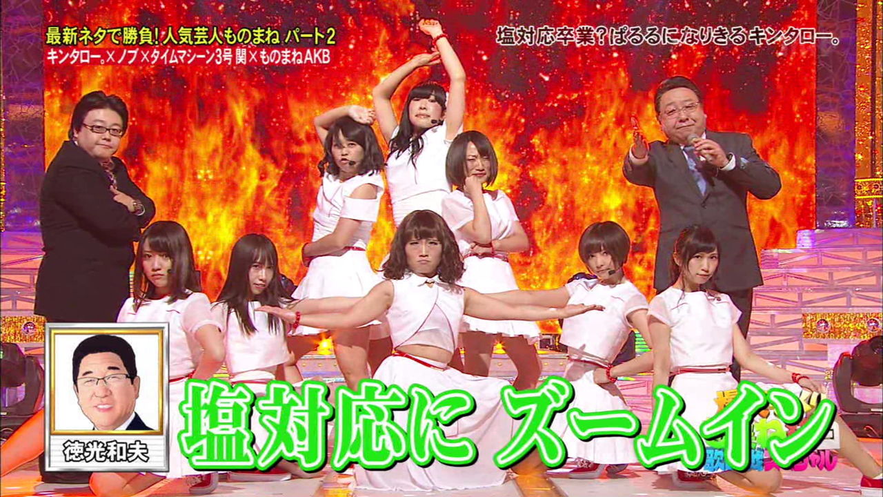 この日、キンタロー。は得意の前田敦子……ではなく、島崎遥香に扮し、総選挙のスピーチシーンを再現。そして徳光和夫や秋元康、指原莉乃、篠田麻里子らの“そっくりさん”たちと共に、AKB48の曲「僕たちは戦わない」を歌唱した。